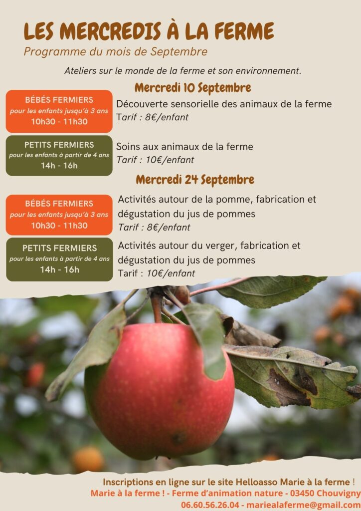 Située à Chouvigny, entre le Puy de Dôme et l’Allier, Marie à la Ferme est une ferme pédagogique tous publics, pour les groupes et individuels. Venez faire connaissance avec les animaux ou participer à la vie de la ferme : Vous y retrouverez les chèvres, les moutons, les ânes, les lapins, les poules, les canards, le dindon et Monsieur Cochon !